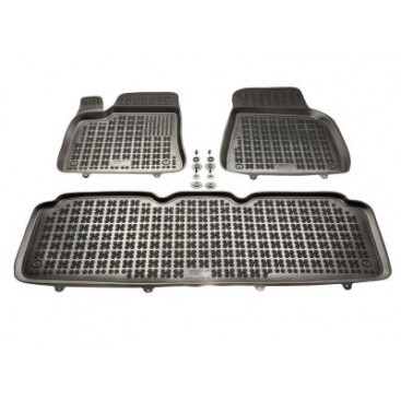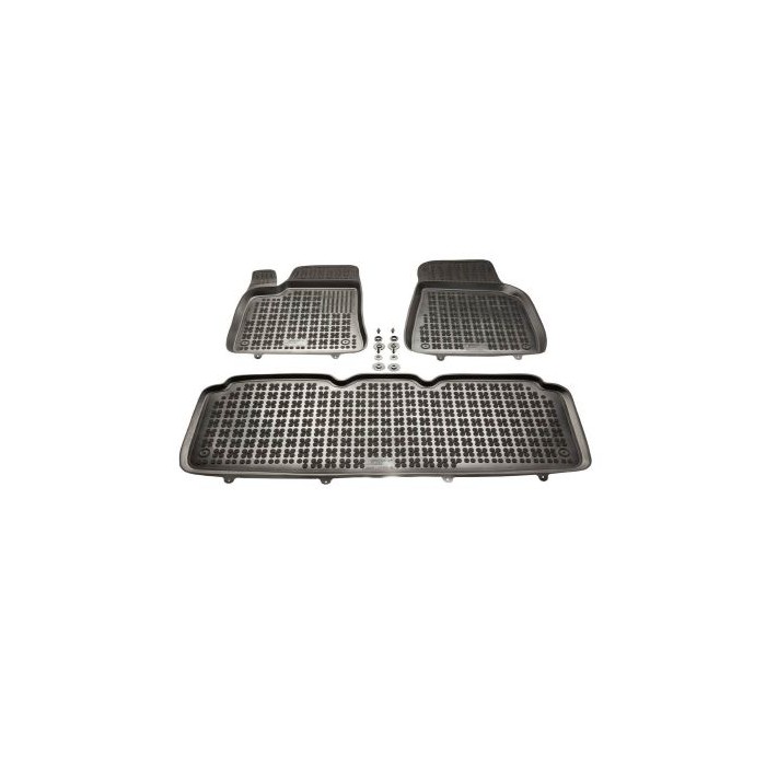 É composto por 3 peças e inclui os clipes para os tapetes da frente.